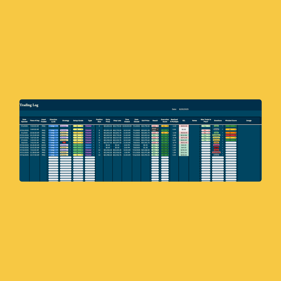 - You want to track discipline (not just P&L)